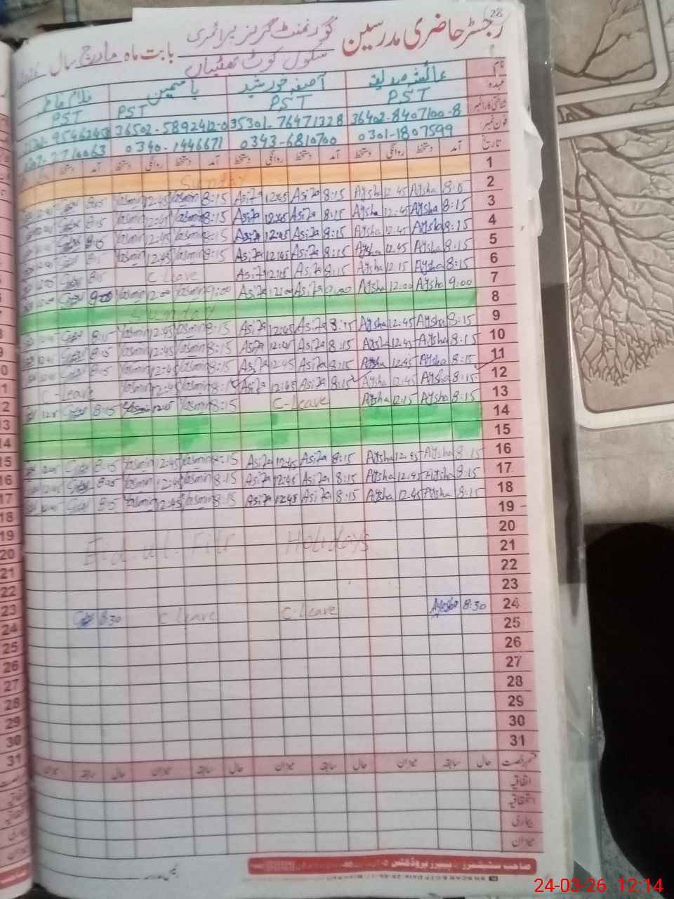 | Leave | Duty | Absent | Maternity | Medical | Ex- Pak |