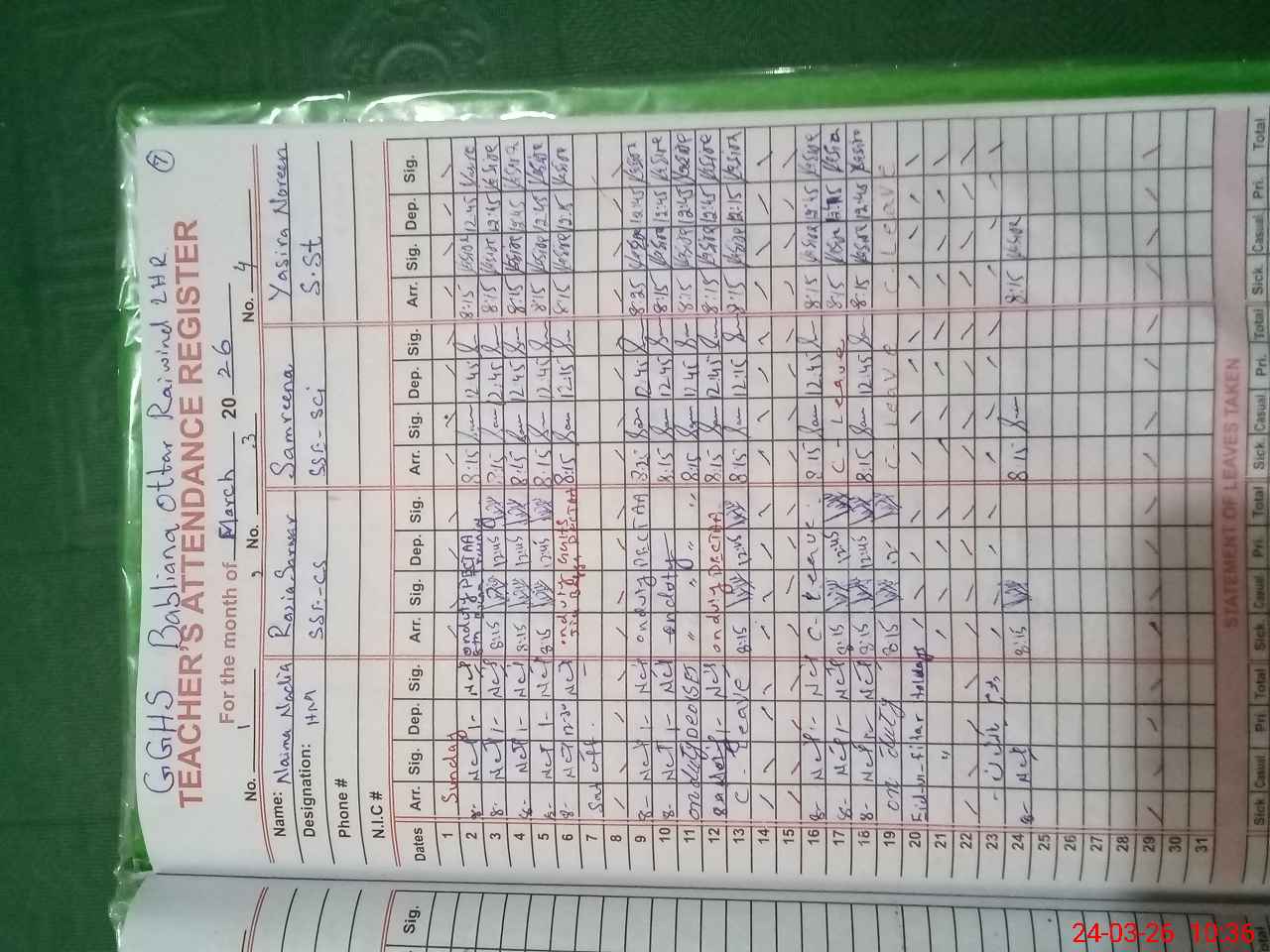 | 35**** | Sa**** Sh**** | PST Science/Maths | Regular | 0 | 0 | 0 | 0 | 0 | 0 | 0 | 0 | 0 | Absent (Un-Authorized) |