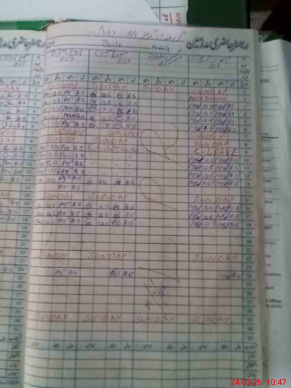 | Leave | Duty | Absent | Maternity | Medical | Ex- Pak |