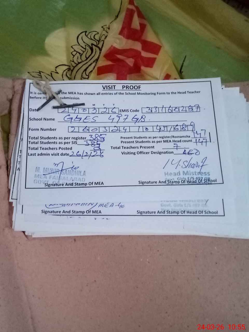| Attendance Register | Head Teacher | MEA with School | Visit Proof |