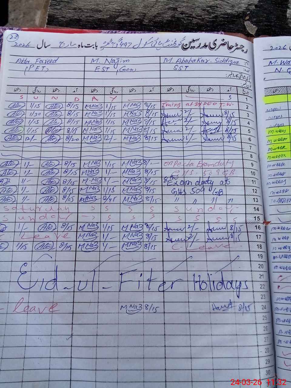 | CNIC | Full Name | Designation | R/C | Absence During Last Calender Month |