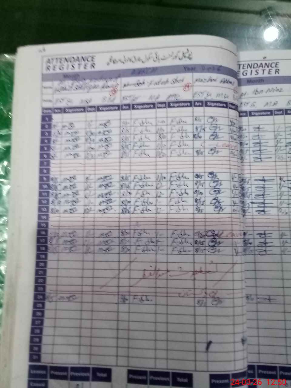 | CNIC | Full Name | Designation | R/C | Absence During Last Calender Month |