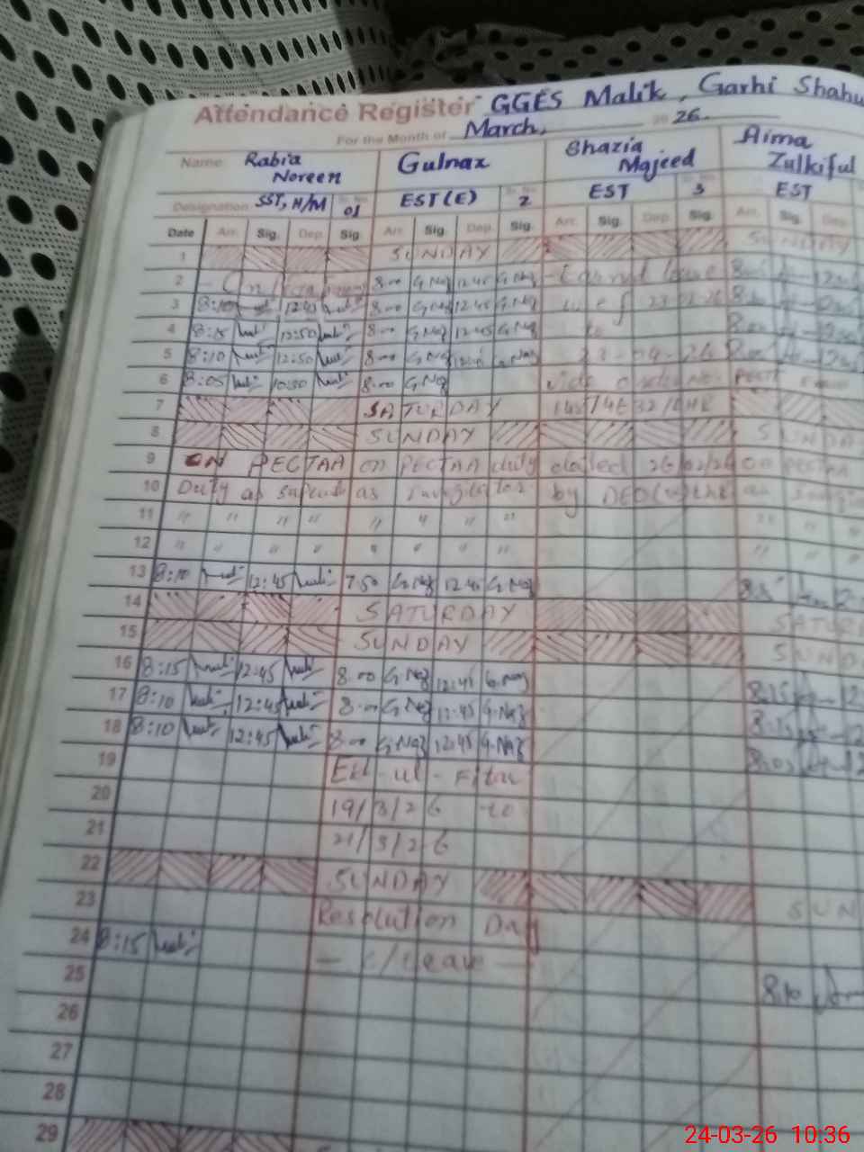 | Leave | Duty | Absent | Maternity | Medical | Ex- Pak |