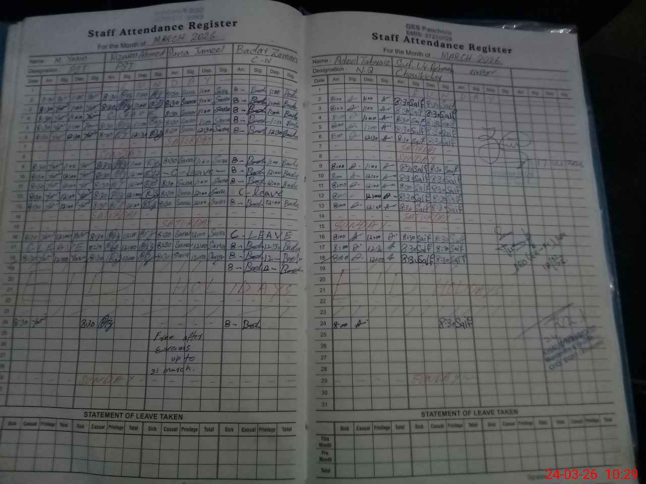 | Leave | Duty | Absent | Maternity | Medical | Ex- Pak |