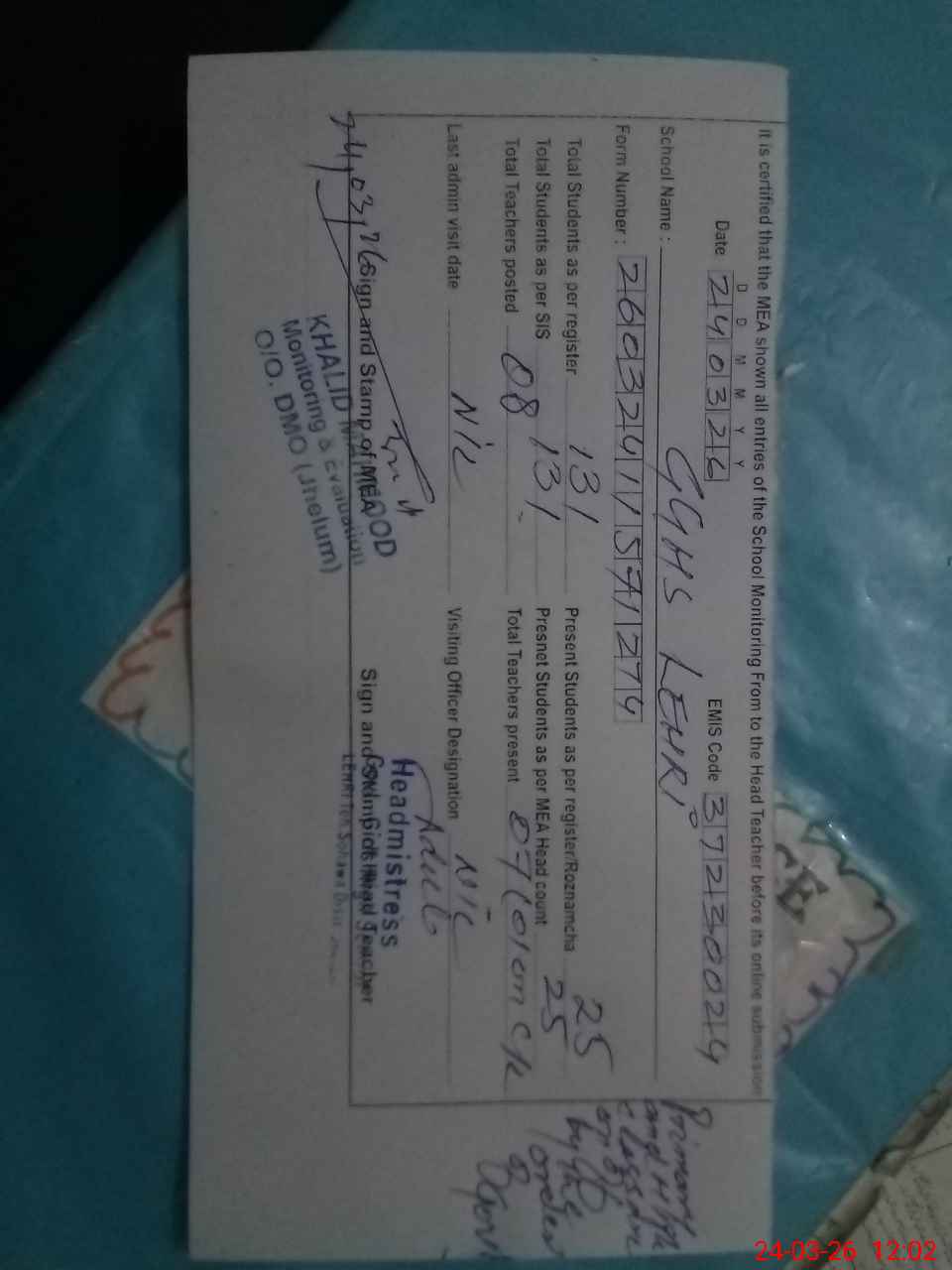 | EMIS Code: 37230024 | Name of School: GGHS LEHRI | |||