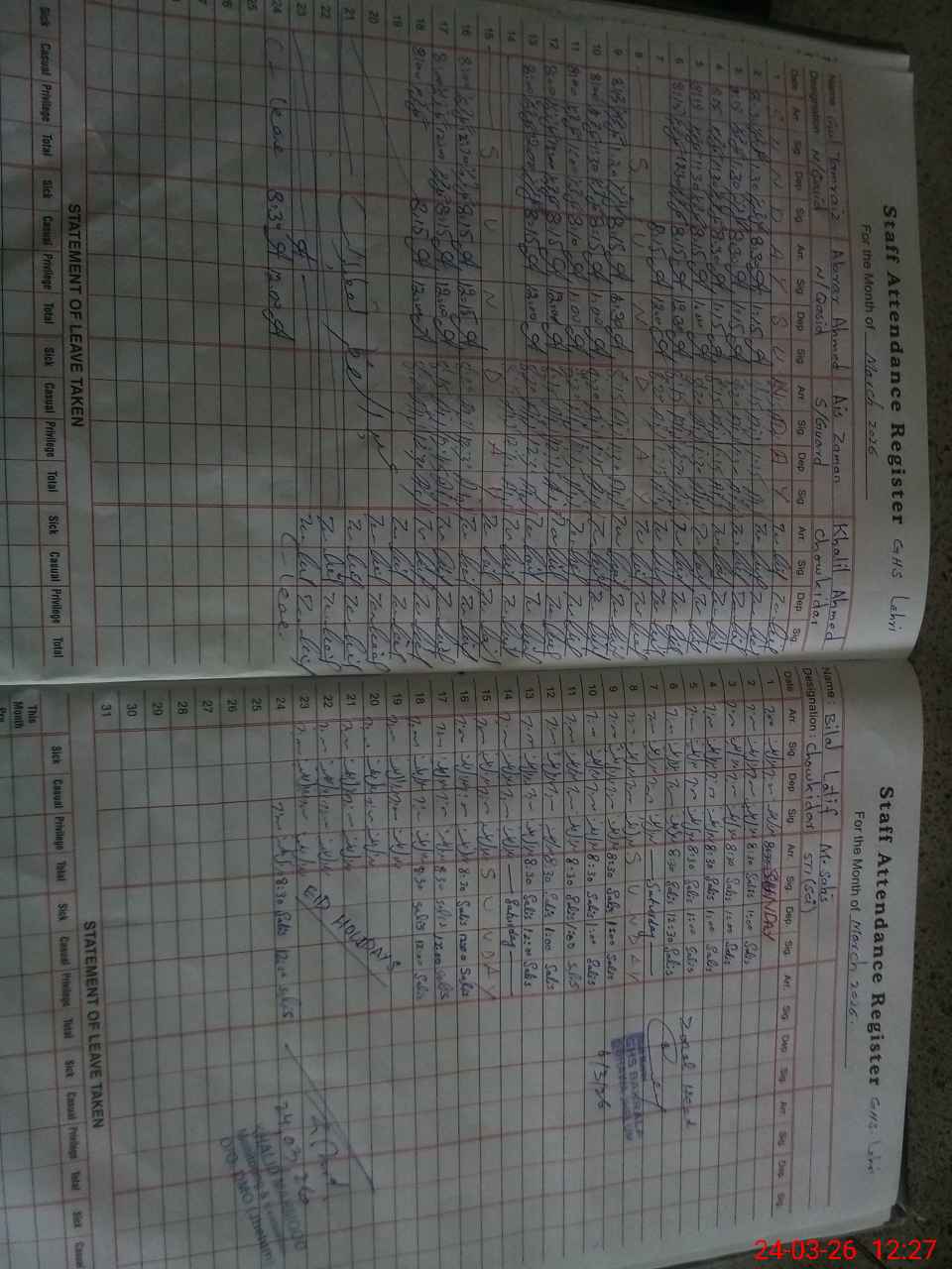 | Leave | Duty | Absent | Maternity | Medical | Ex- Pak |