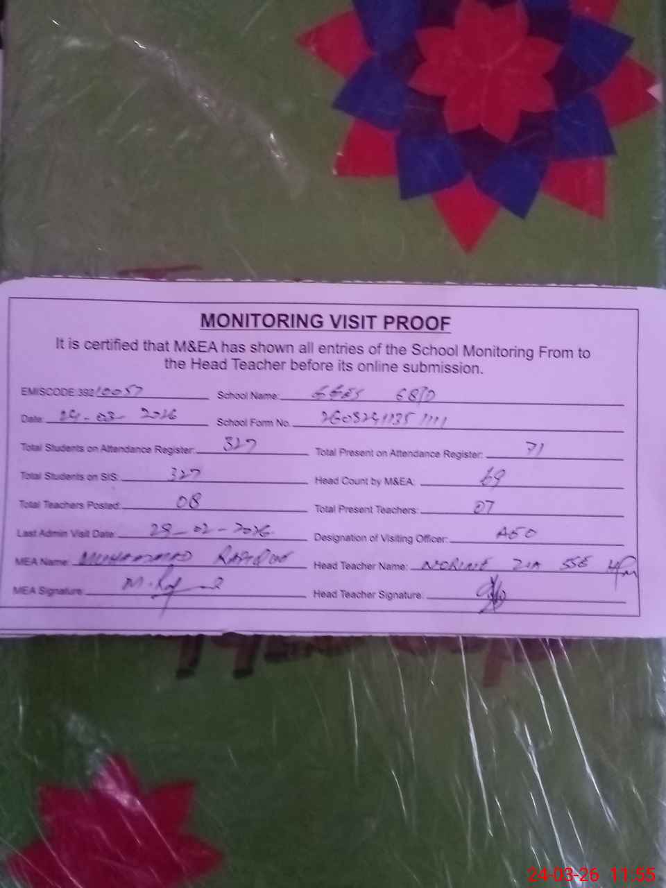 | Certified that this School was Inspected by the Undersigned MEA/DMO Today and the Information Stated Above is as Per Record. | |||||