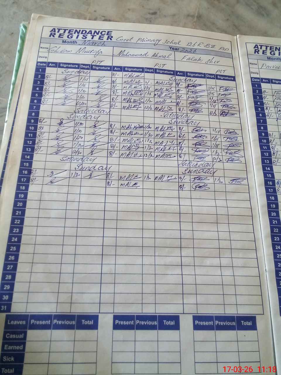 | Leave | Duty | Absent | Maternity | Medical | Ex- Pak |