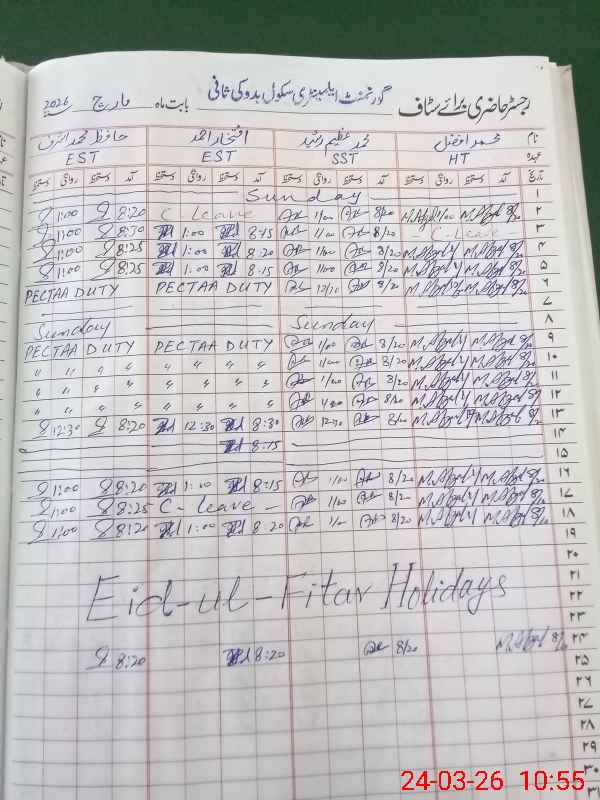 | Leave | Duty | Absent | Maternity | Medical | Ex- Pak |