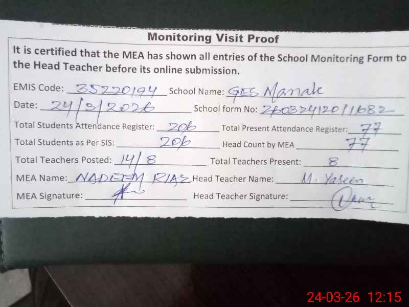 | EMIS Code: 35220194 | Name of School: GES MANAK LAHORE | |||