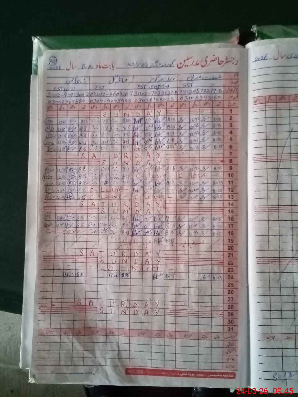 | 31**** | Si**** Ha**** | EST Urdu | Regular | 4 | 0 | 0 | 0 | 0 | 0 | 0 | 0 | 4 | Absent (Un-Authorized) |