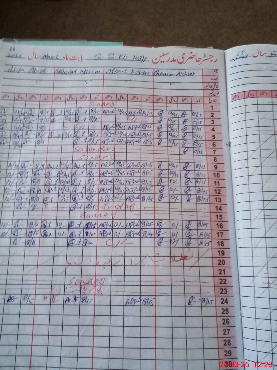 | 31**** | Aa**** Sa**** | EST Science | Regular | 0 | 0 | 0 | 0 | 0 | 0 | 0 | 0 | 0 | Absent (Un-Authorized) |