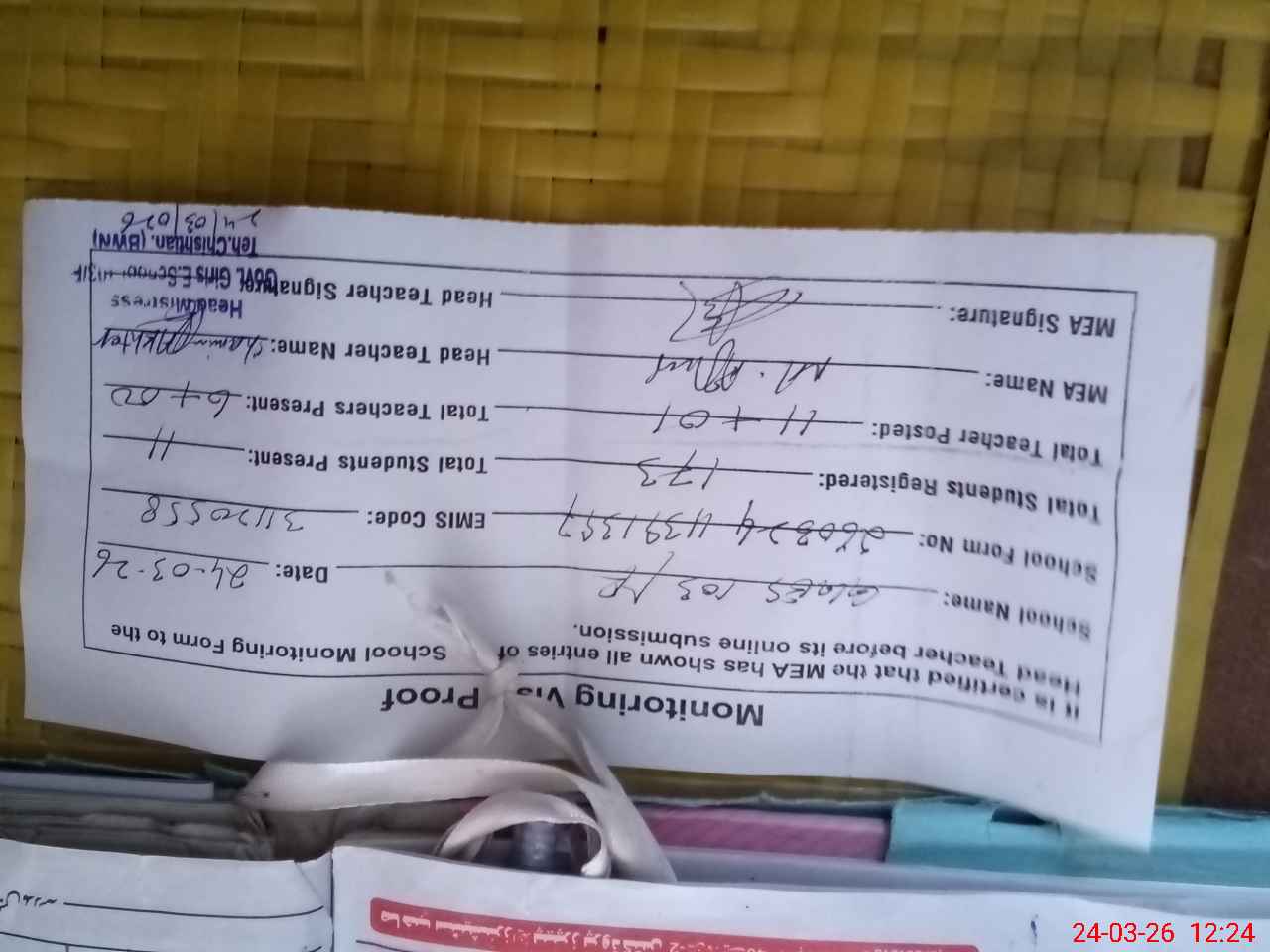 | Attendance Register | Head Teacher | MEA with School | Visit Proof |