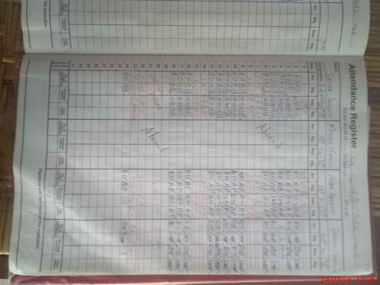 | 33**** | Ma**** Ha**** | SST Computer Science | Regular | 0 | 0 | 28 | 0 | 0 | 0 | 0 | 0 | 0 | Absent (Un-Authorized) |