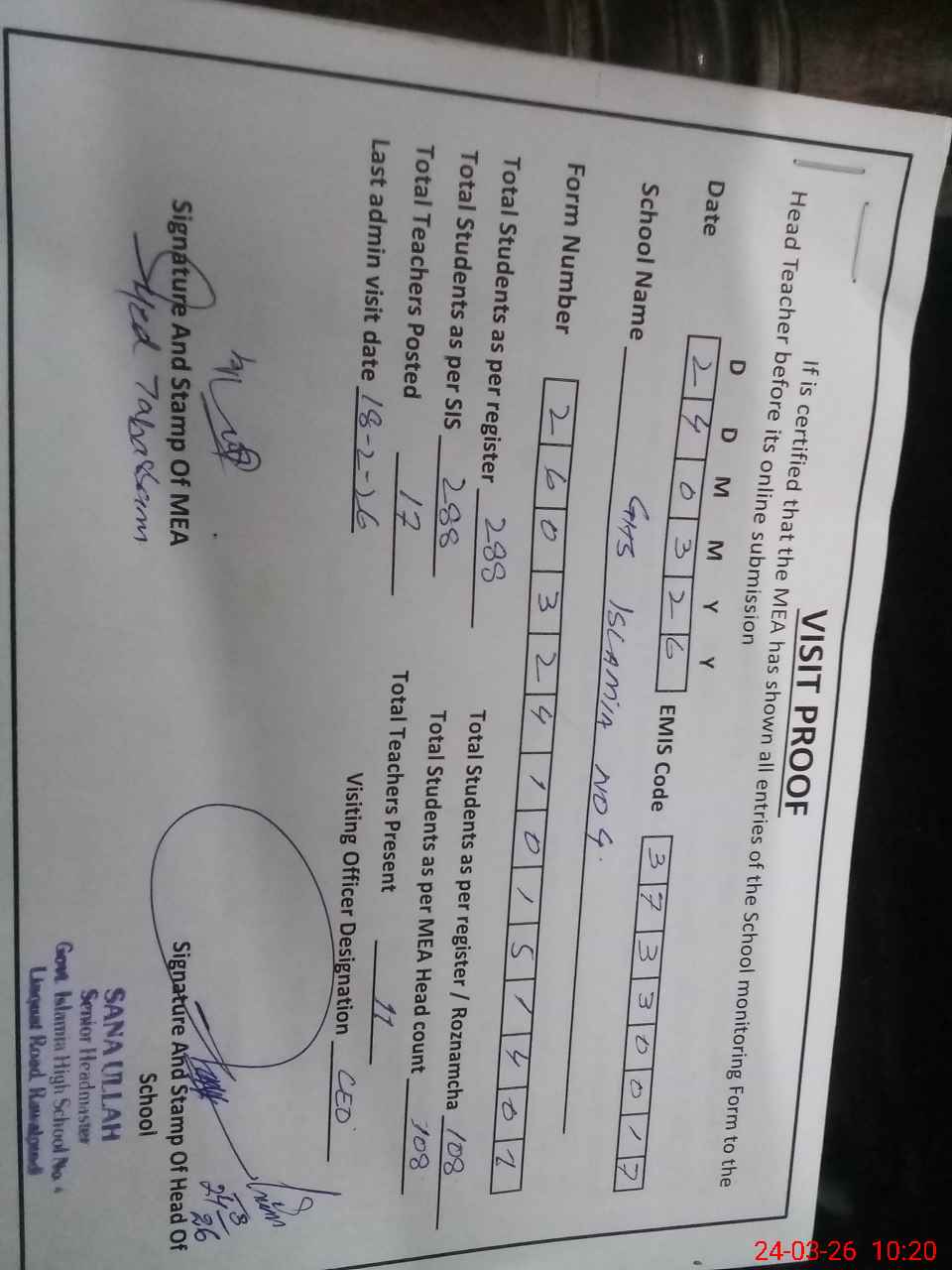 | EMIS Code: 37330017 | Name of School: GHS ISLAMIA NO. 4 | |||