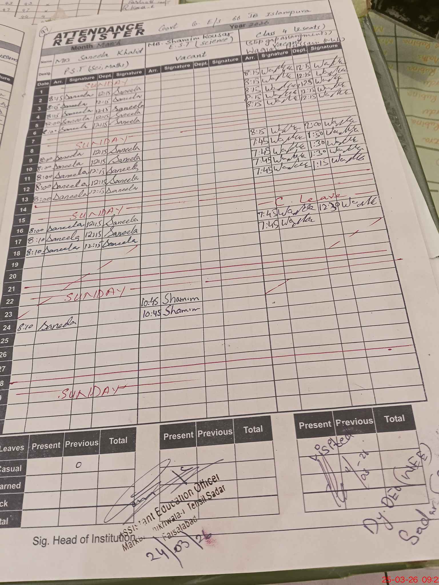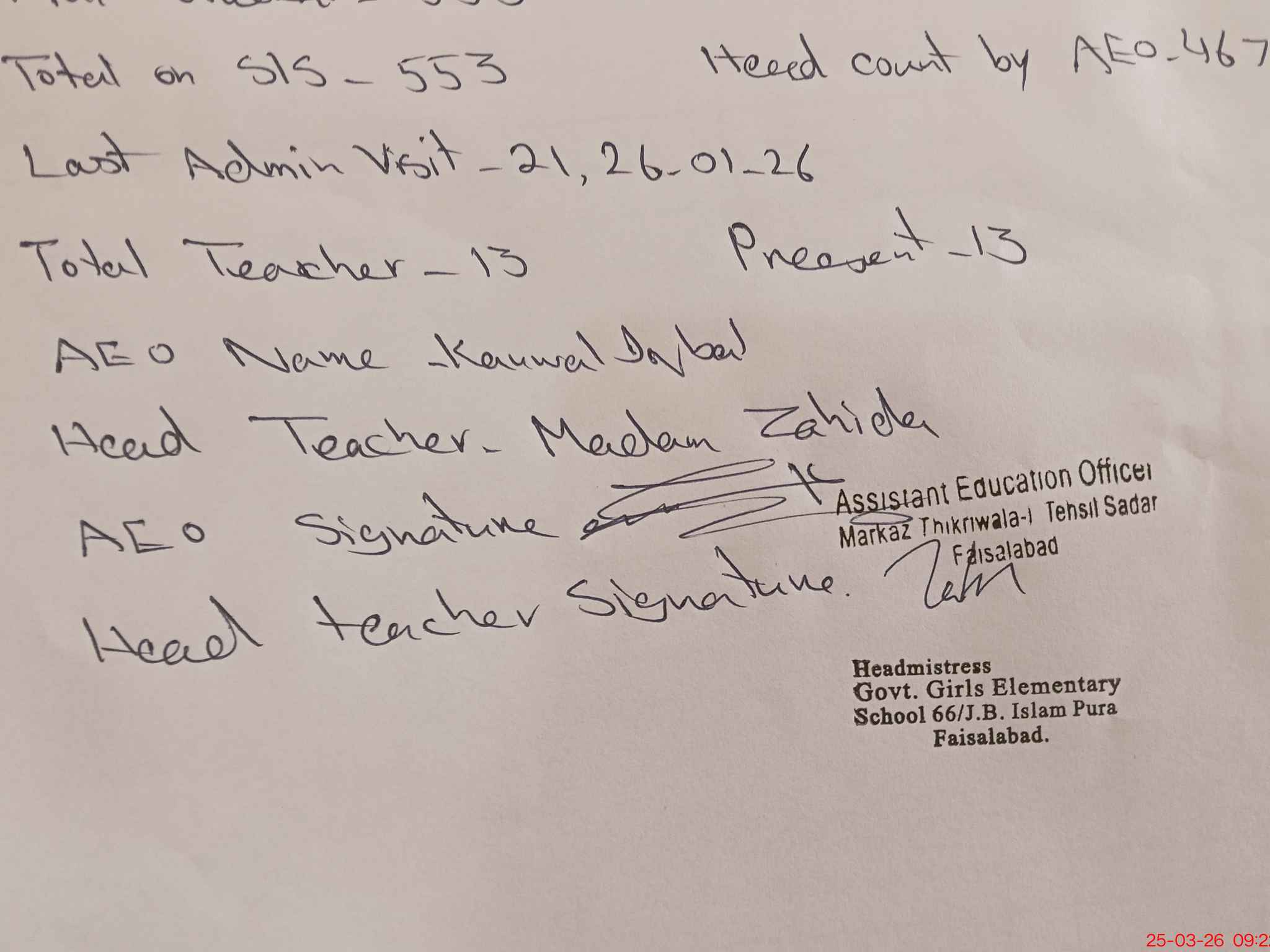 | Name: ZA**** PA**** Designation: (School Headmaster's/Headmistress's) S.S.T.(G) Phone/Cell Number: 03**** |