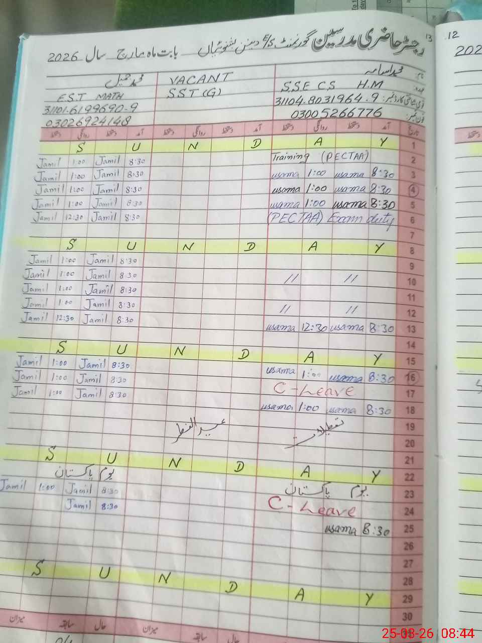 | 31**** | Mu**** Ma**** | ESE Science | Contract | 0 | 0 | 0 | 0 | 0 | 0 | 0 | 0 | 0 | Casual |