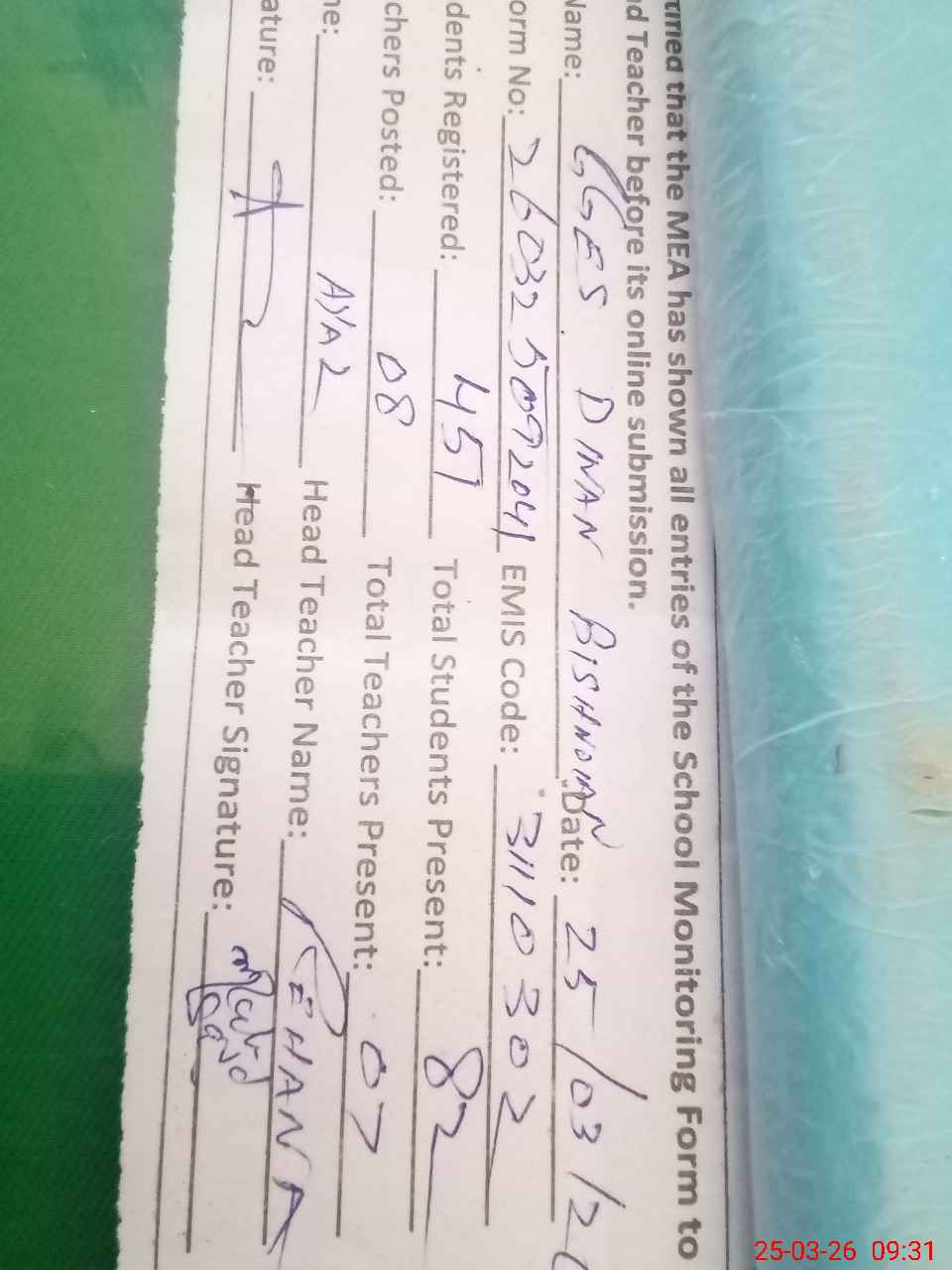 | EMIS Code: 31110302 | Name of School: GGES DINAN BISHNOIAN | |||
