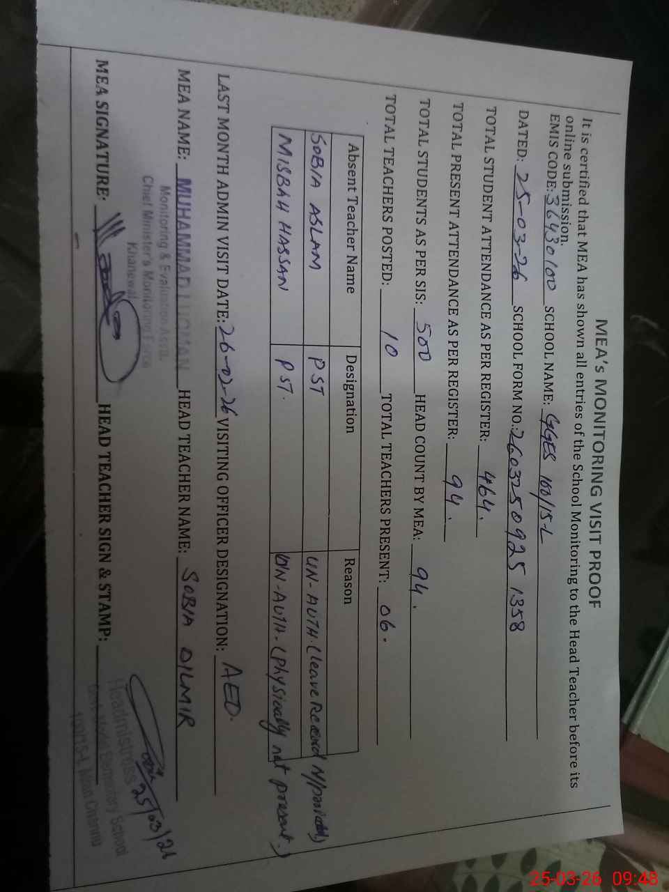 | EMIS Code: 36430100 | Name of School: GGES 100/15-L, MIAN CHANNU | |||