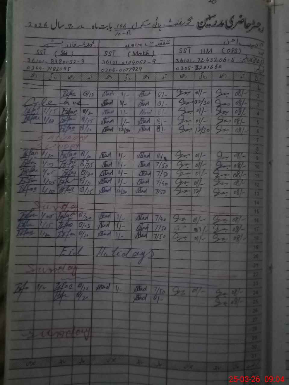 | Name: Ha**** Ah**** Designation: (School Headmaster's/Headmistress's) SST(ENG) Phone/Cell Number: 03**** |