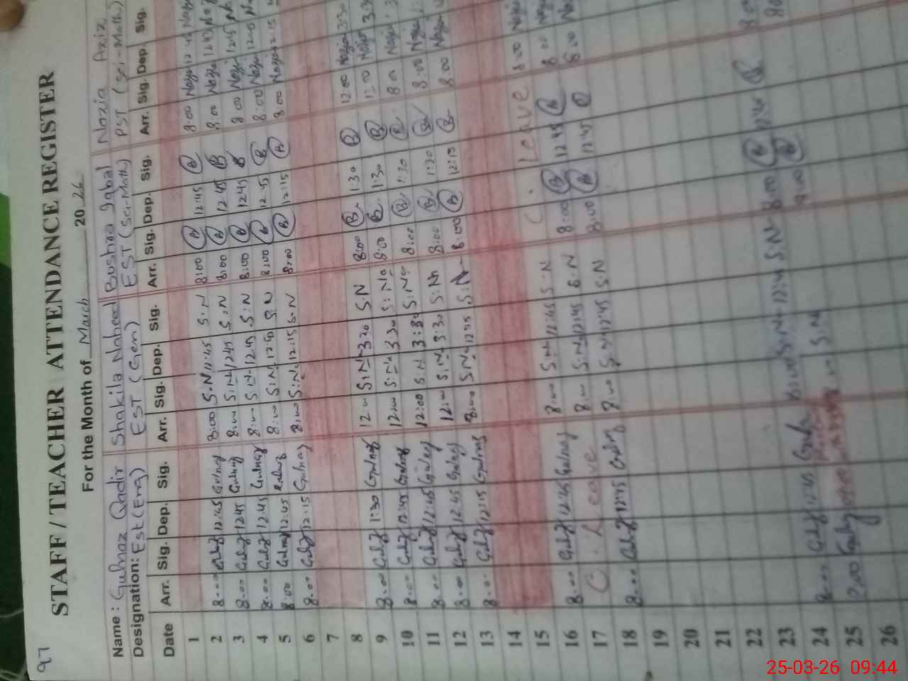 | CNIC | Full Name | Designation | R/C | Absence During Last Calender Month |
