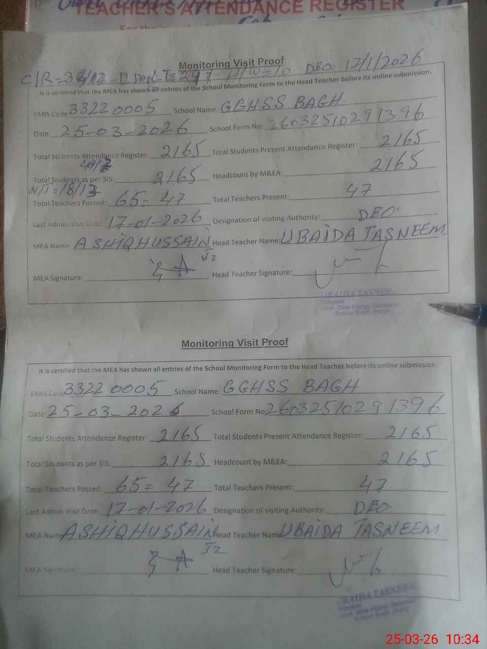 | EMIS Code: 33220005 | Name of School: GGHSS BAGH | |||