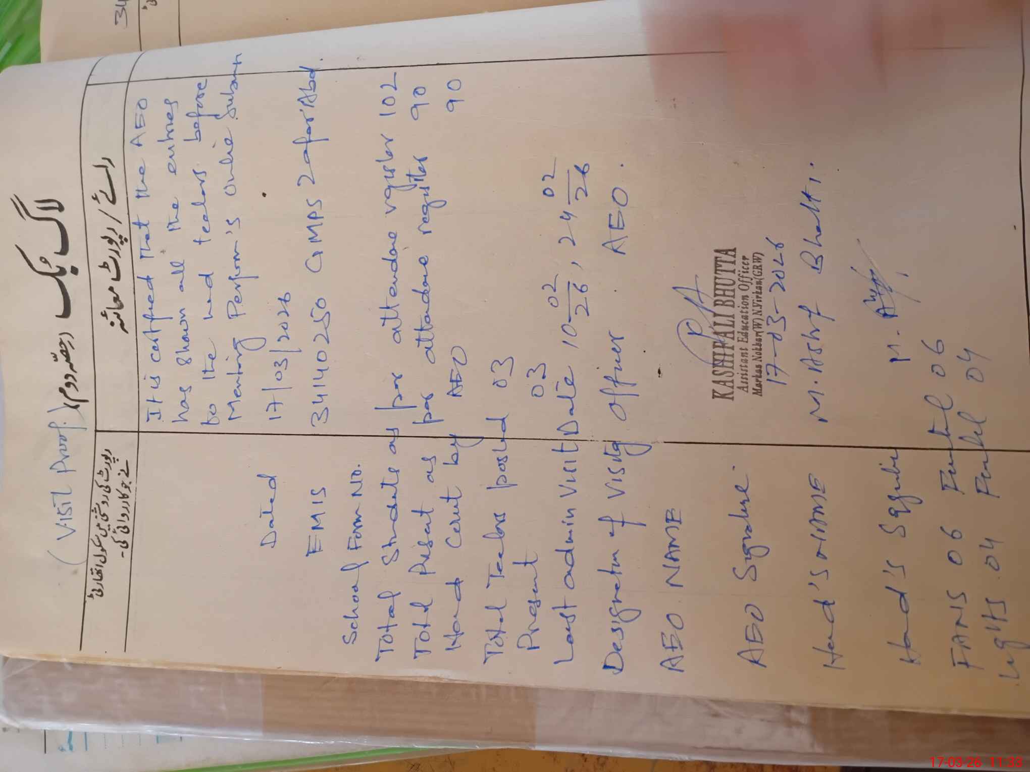 | Name: Mu**** As**** Bh**** Designation: (School Headmaster's/Headmistress's) PST Phone/Cell Number: 03**** |