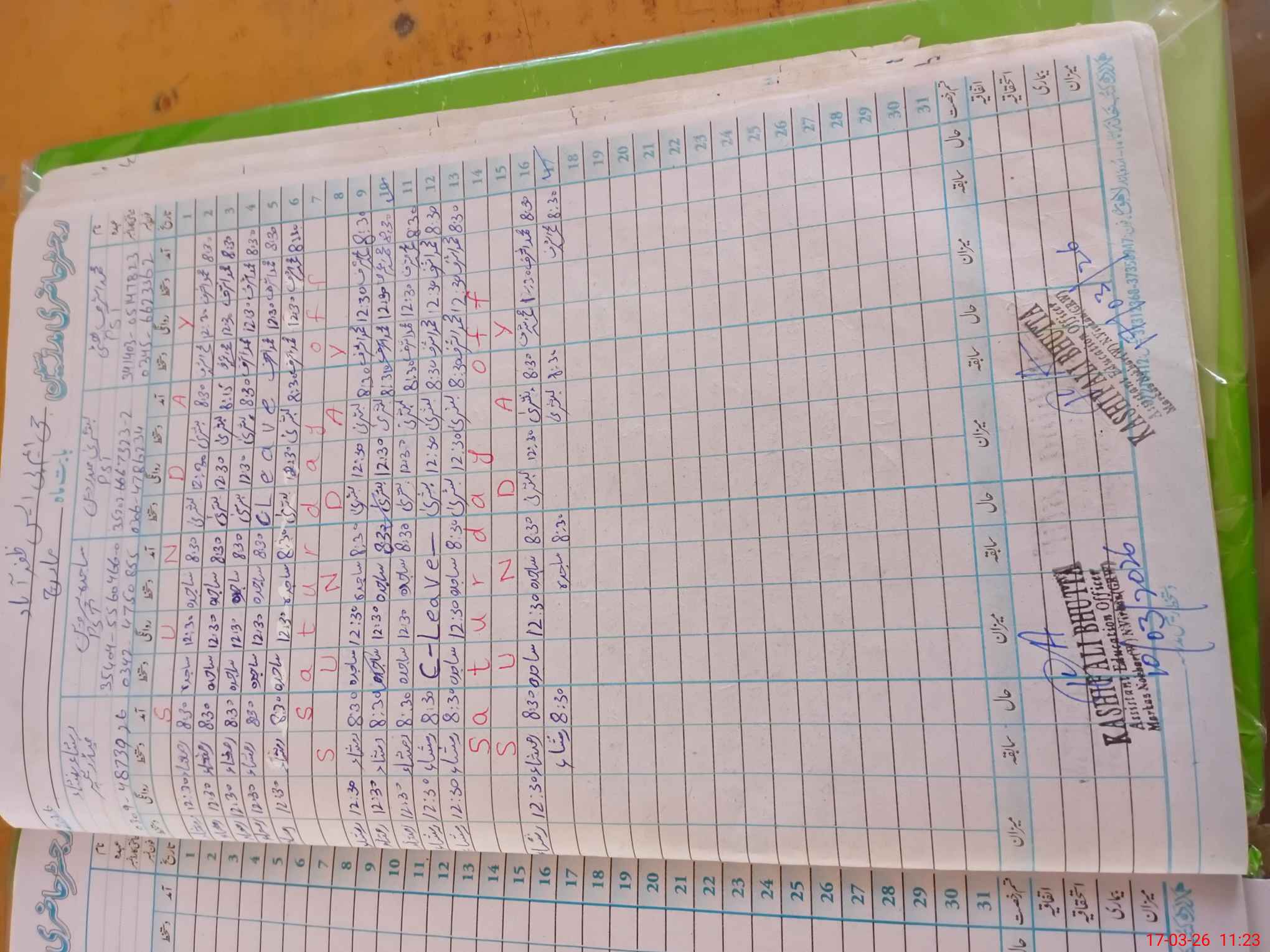 | CNIC | Full Name | Designation | R/C | Absence During Last Calender Month |