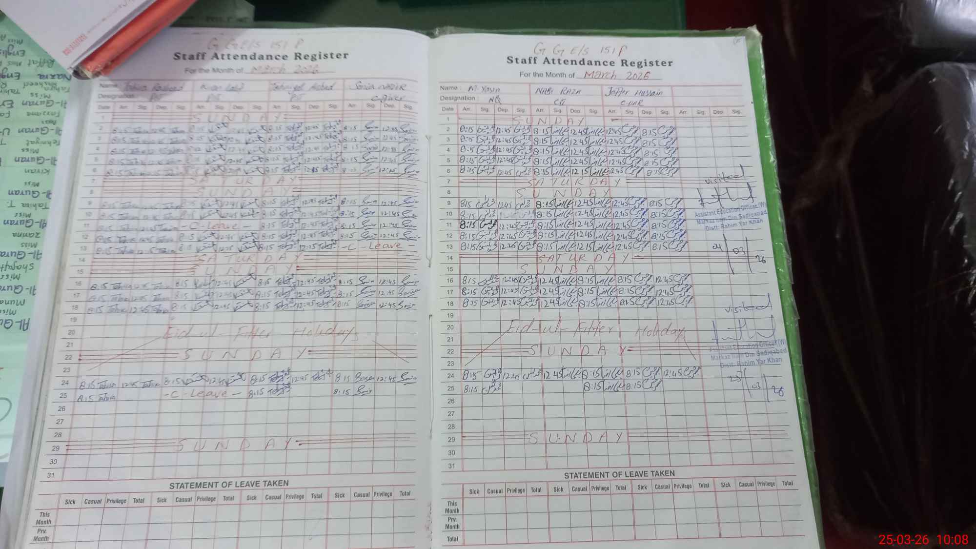 | Attendance Register | Head Teacher | MEA with School | Visit Proof |