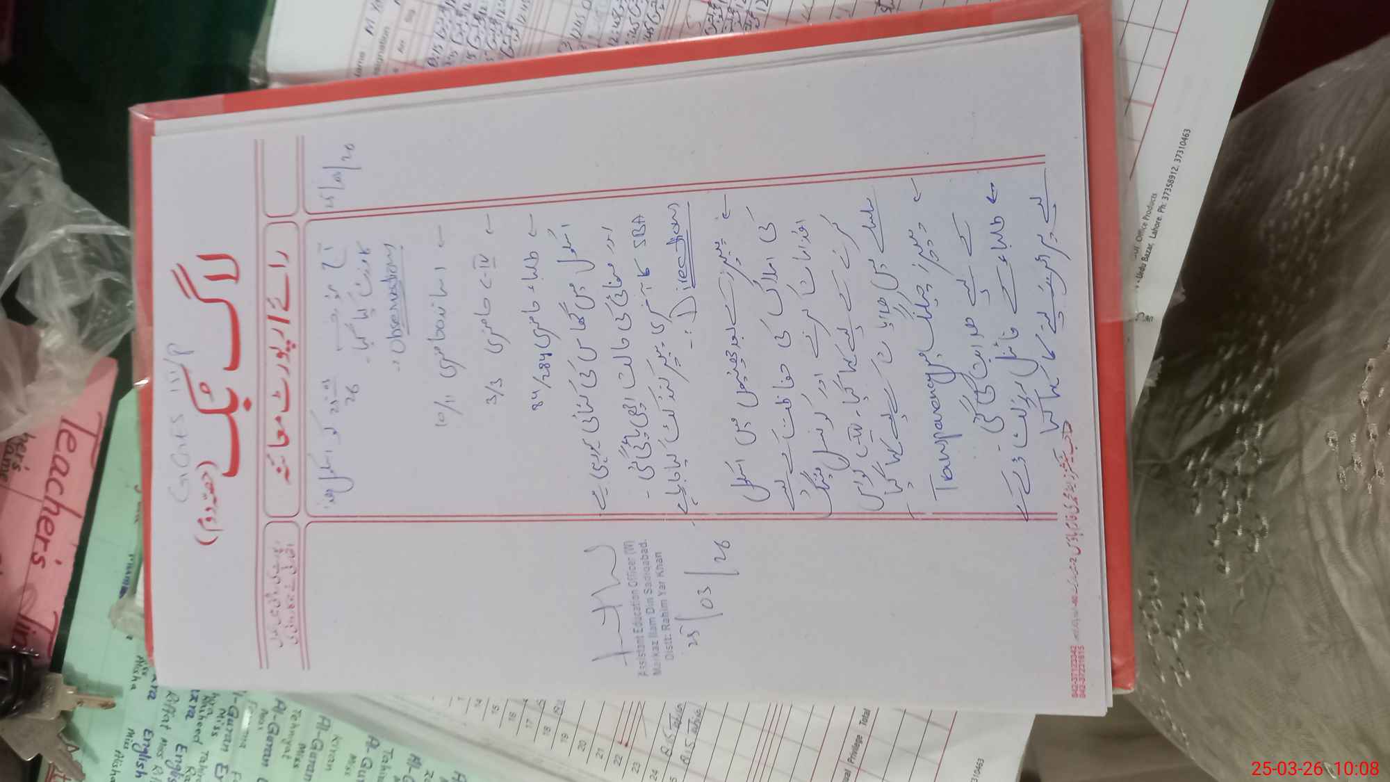 | Name: IR**** SA**** Designation: (School Headmaster's/Headmistress's) SST Phone/Cell Number: 03**** |