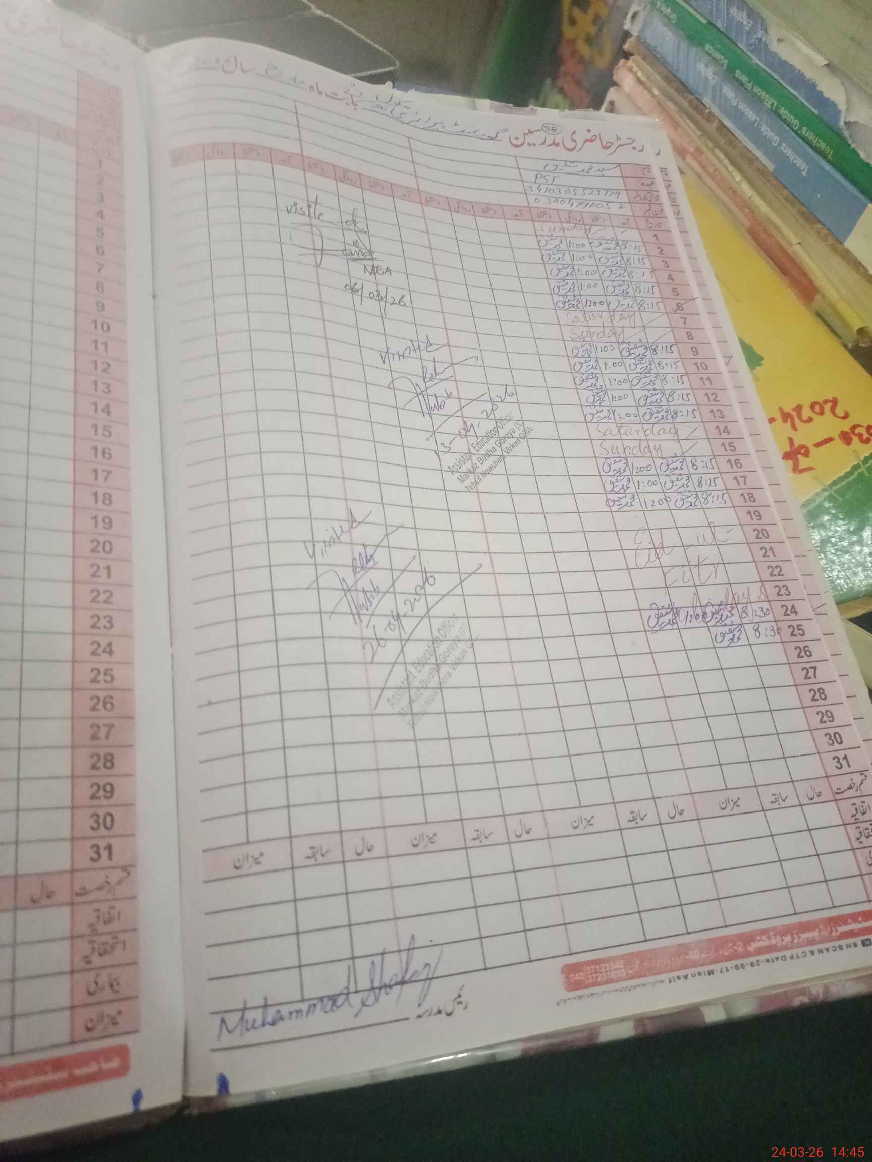 | Name: SY**** MU**** SH**** Designation: (School Headmaster's/Headmistress's) PST Phone/Cell Number: 03**** |