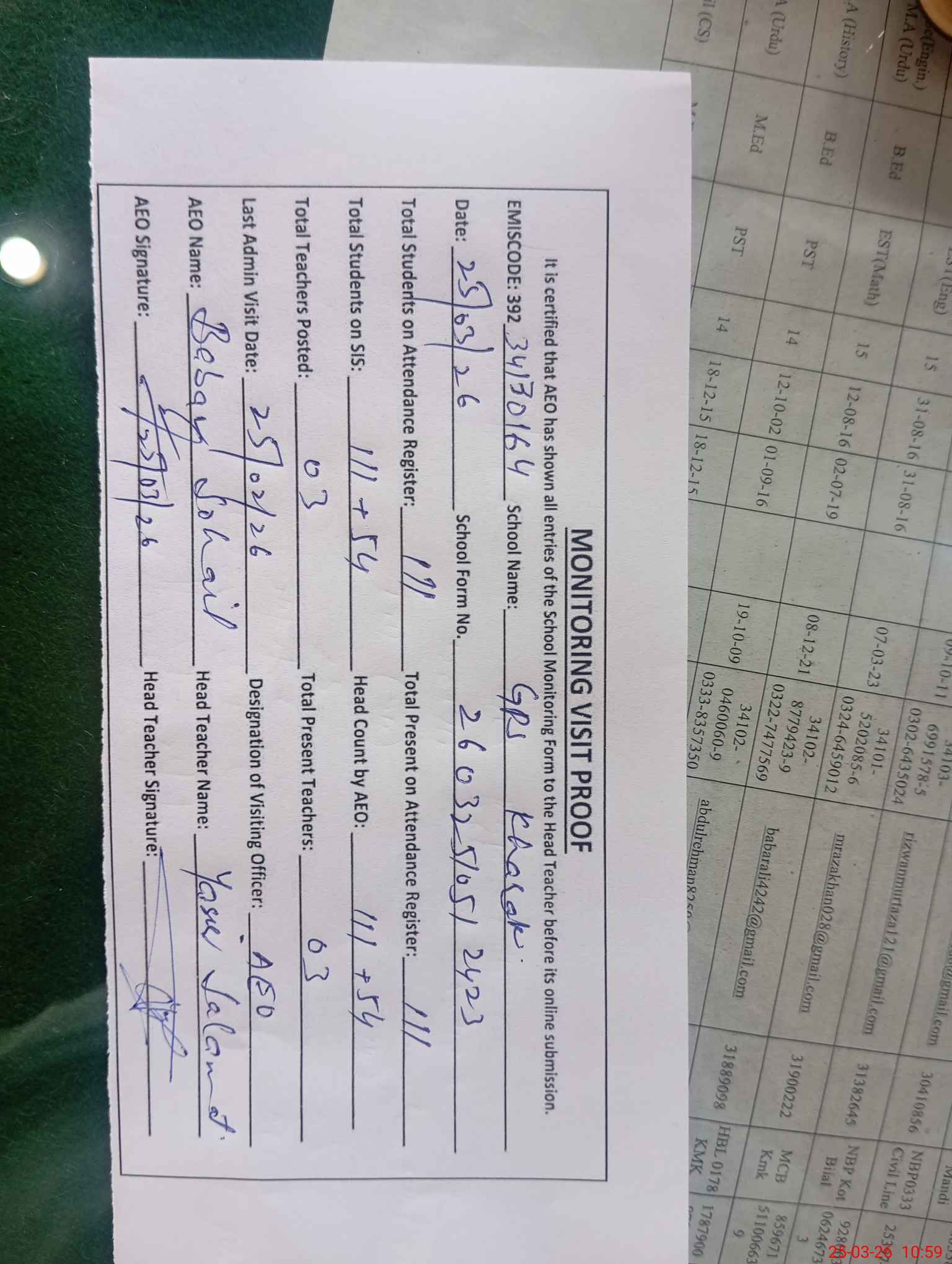 | EMIS Code: 34130164 | Name of School: GPS KHARAK | |||