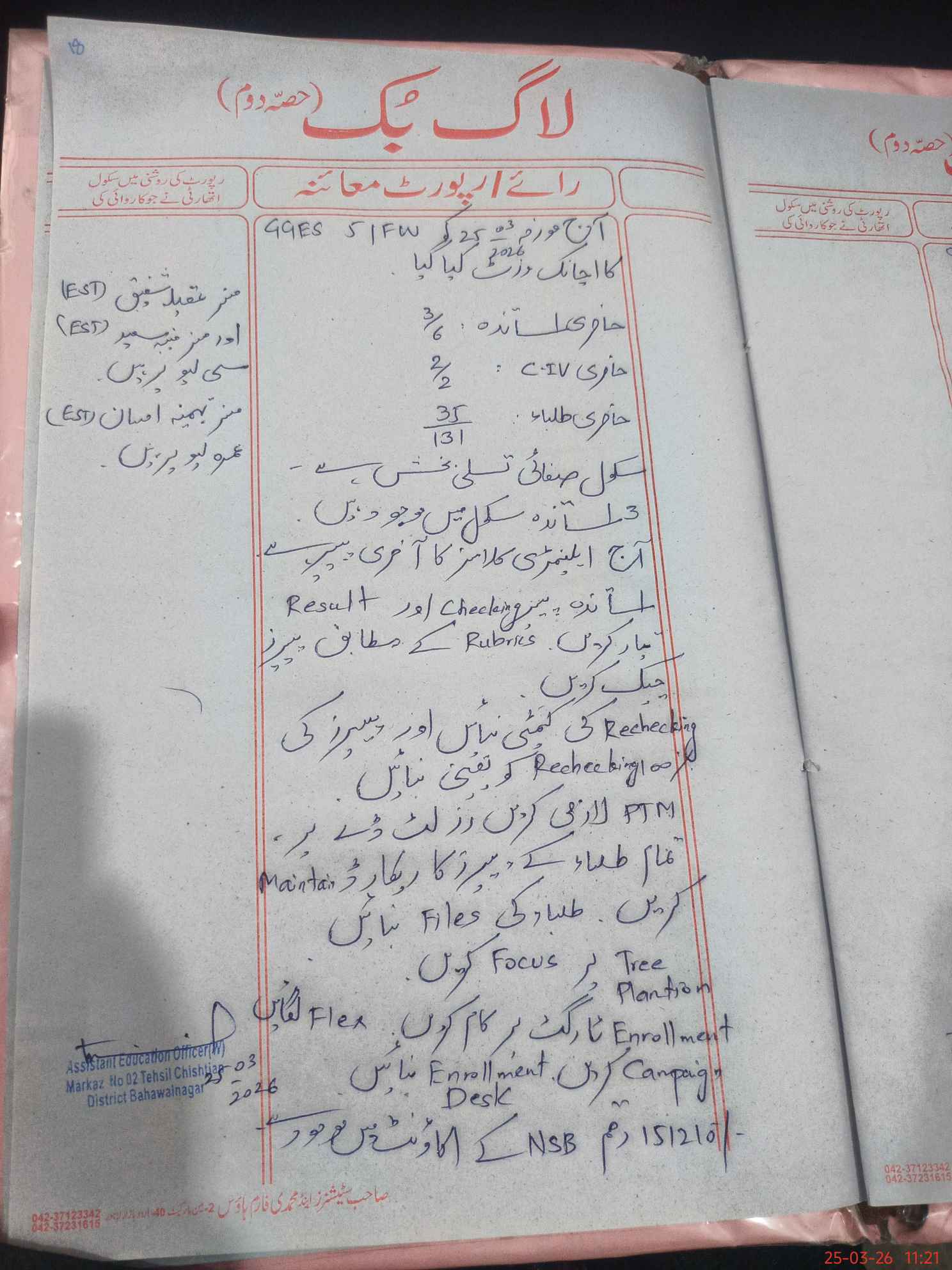 | District: BAHAWALNAGAR | Tehsil: CHISHTIAN | Markaz: CTN -II-FEMALE | Level: Middle | |