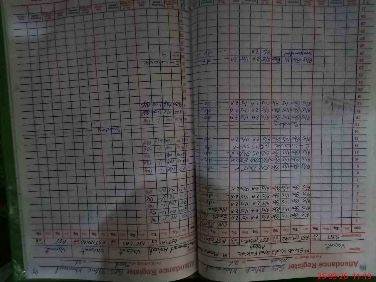| 36**** | Sy**** Az**** Ab**** | PST Arts | Regular | 0 | 0 | 0 | 0 | 0 | 0 | 0 | 0 | 0 | Casual |