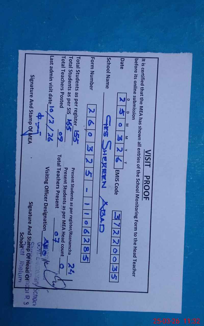 | EMIS Code: 37220035 | Name of School: GES SHEREEN ABAD | |||