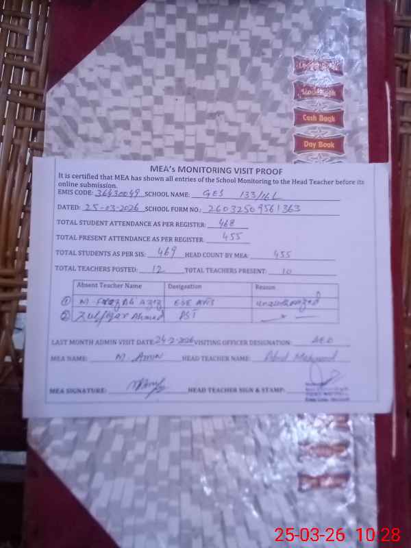 | Attendance Register | Head Teacher | MEA with School | Visit Proof |