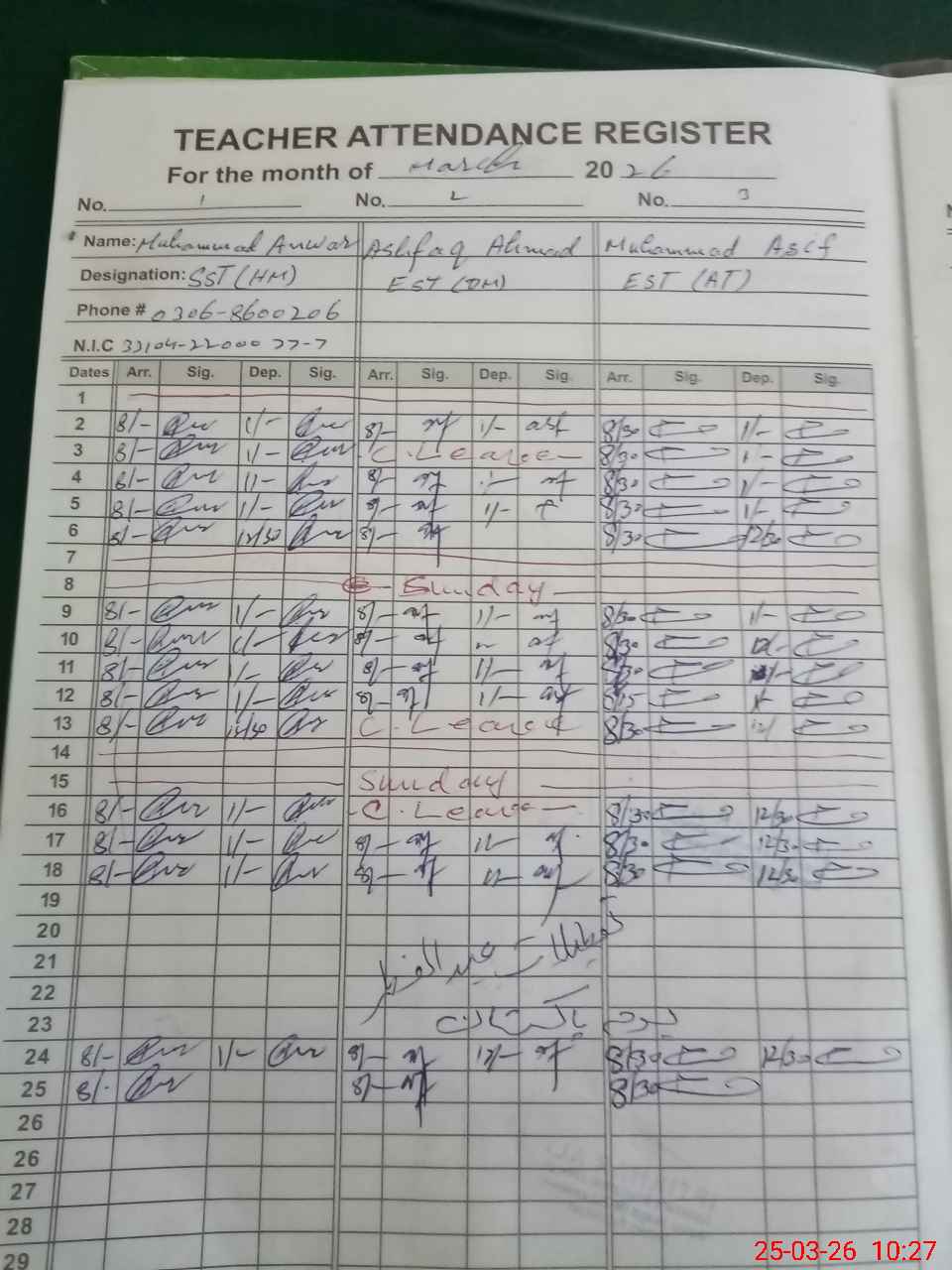 | 33**** | Mu**** Al**** | PST Arts | Regular | 0 | 0 | 0 | 0 | 0 | 0 | 0 | 0 | 0 | Absent (Un-Authorized) |