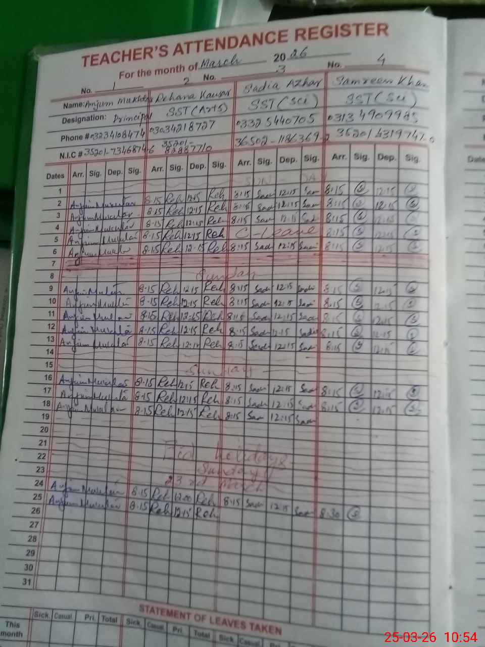 | 35**** | Sa**** Kh**** | SST Science | Regular | 0 | 0 | 0 | 0 | 0 | 0 | 0 | 0 | 0 | Absent (Un-Authorized) |