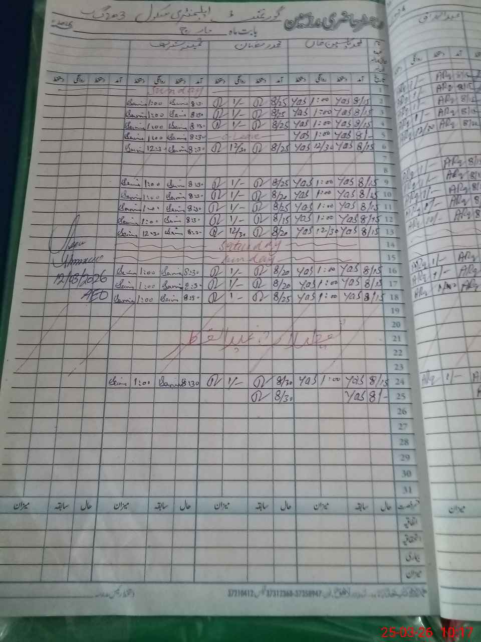 | Remarks (Use Separate Page if Required): NURSERY CLASS TO 5TH CLASS FOUND EXAM OFF TODAY TEACHER SAMINA SHARIF PST COLUMN FOUND BLANK IN ATTENDANCE REGISTER TILL THE TIME OF VISIT SO SHE WAS MARKED ABSENT AS PER SOP | |||||