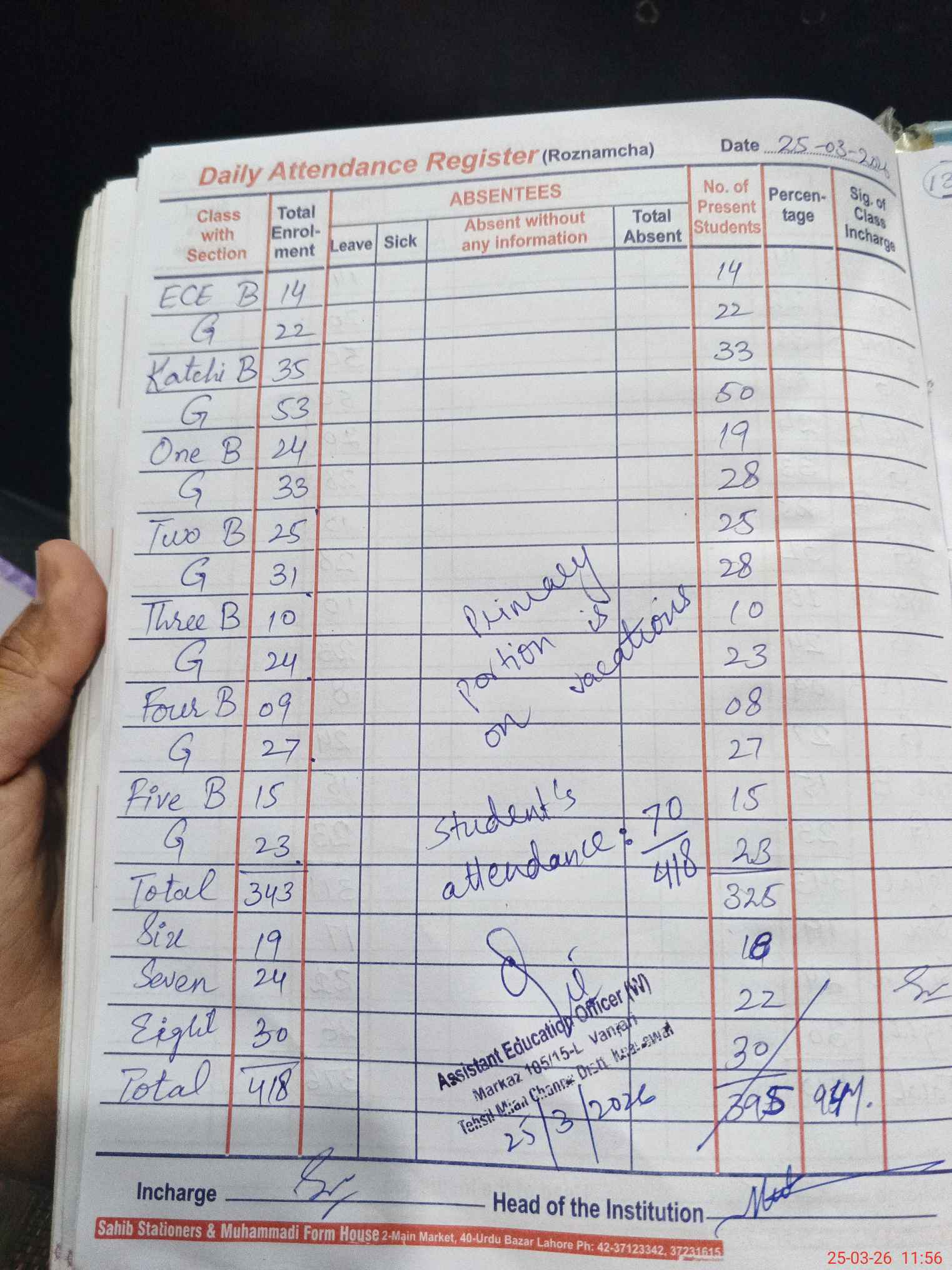 | Attendance Register | Head Teacher | MEA with School | Visit Proof |