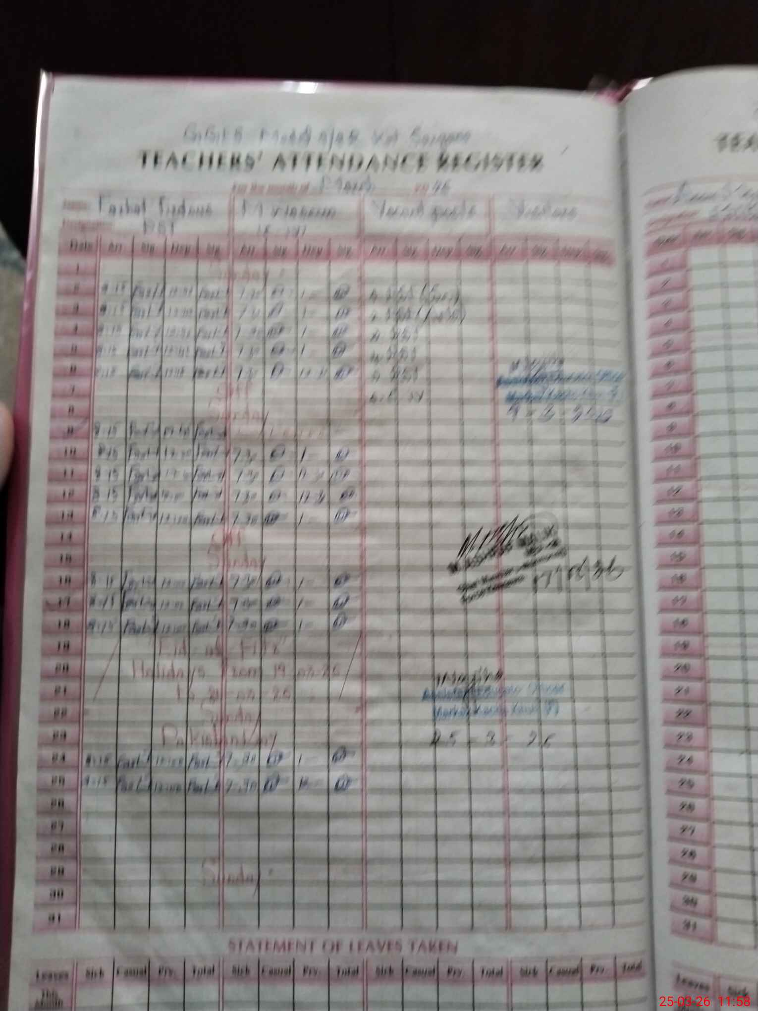 | Leave | Duty | Absent | Maternity | Medical | Ex- Pak |