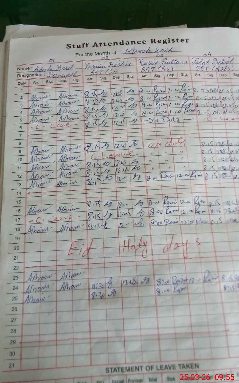 | 00**** | Sh**** Eh**** | JC | Regular | 3 | 1 | 0 | 0 | 0 | 0 | 0 | 0 | 3 | Absent (Un-Authorized) |