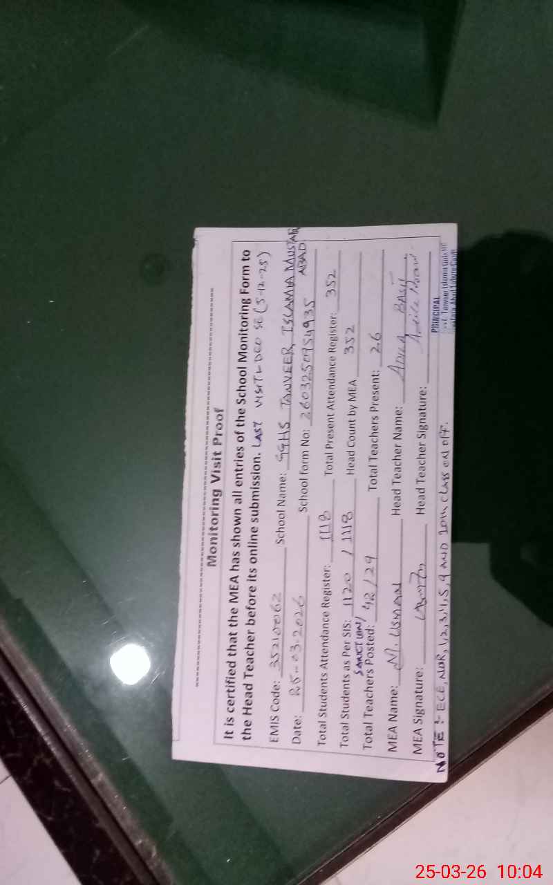 | EMIS Code: 35210062 | Name of School: GGHS TANVEER ISLAMIA MUSTAFA ABAD | |||