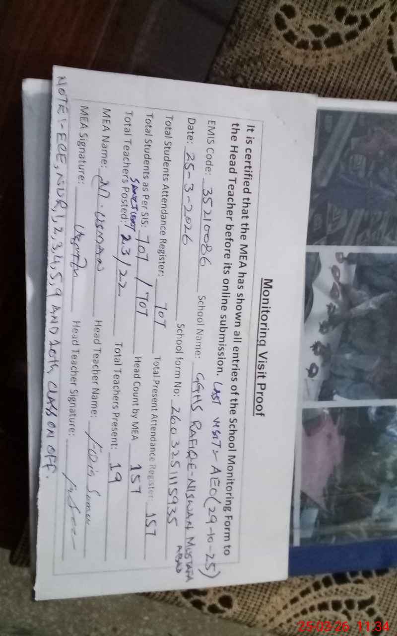 | EMIS Code: 35210086 | Name of School: GGHS RAFIQ-E-NISWAN MUSTAFA ABAD | |||