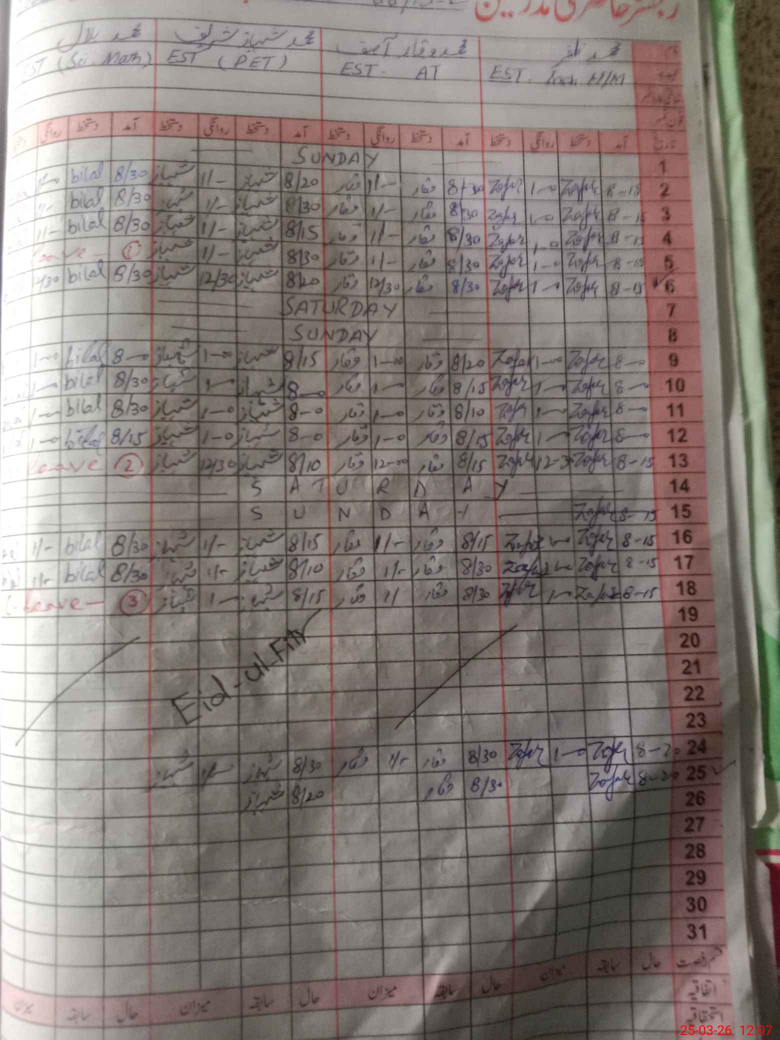 | 36**** | Mu**** Ra**** | PST Science/Maths | Regular | 0 | 0 | 0 | 0 | 0 | 0 | 0 | 0 | 0 | Casual |