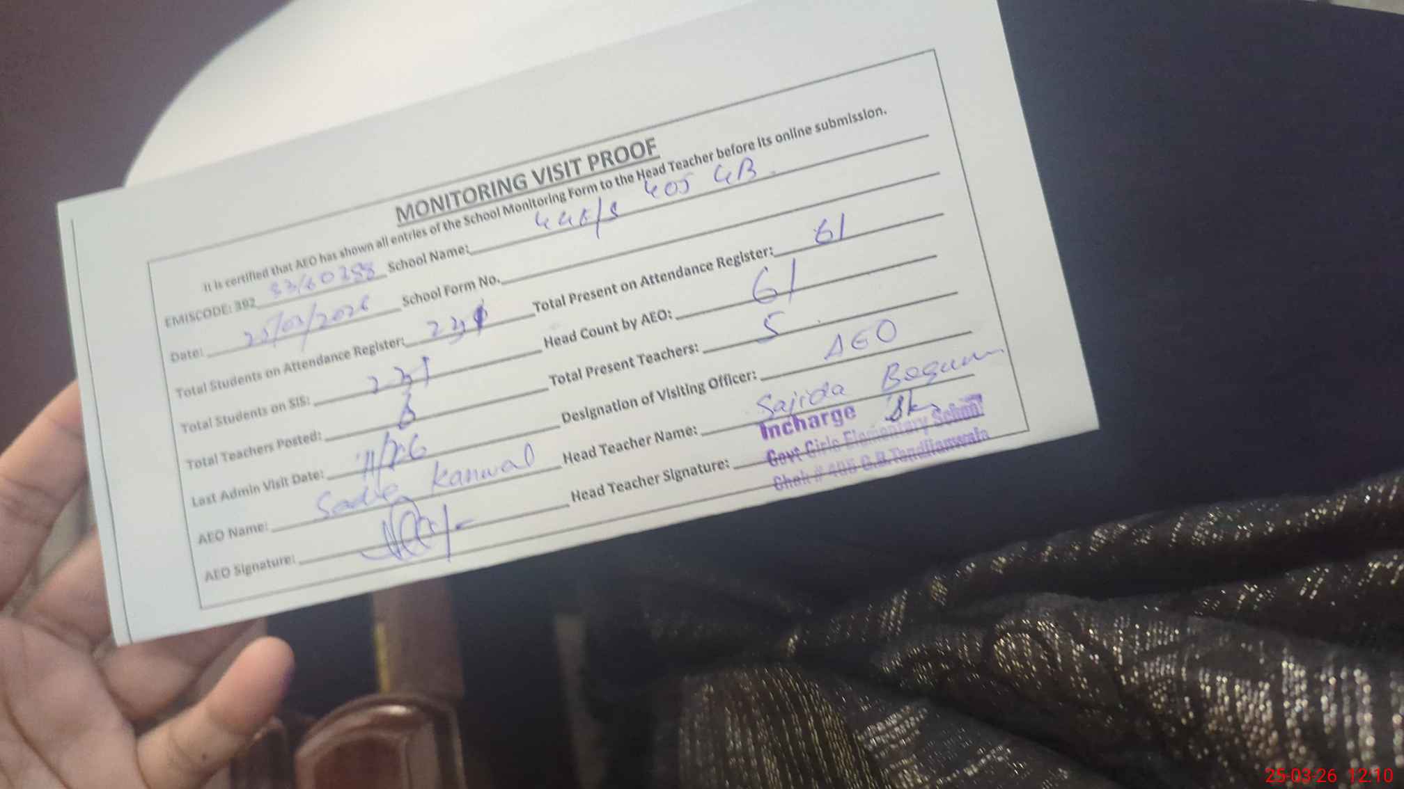 | Certified that this School was Inspected by the Undersigned MEA/DMO Today and the Information Stated Above is as Per Record. | |||||
