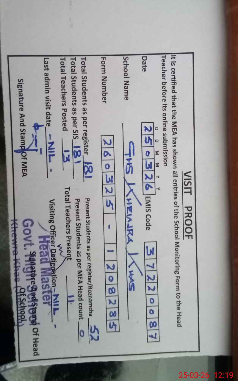 | EMIS Code: 37220087 | Name of School: GHS KHEWRA KHAS | |||