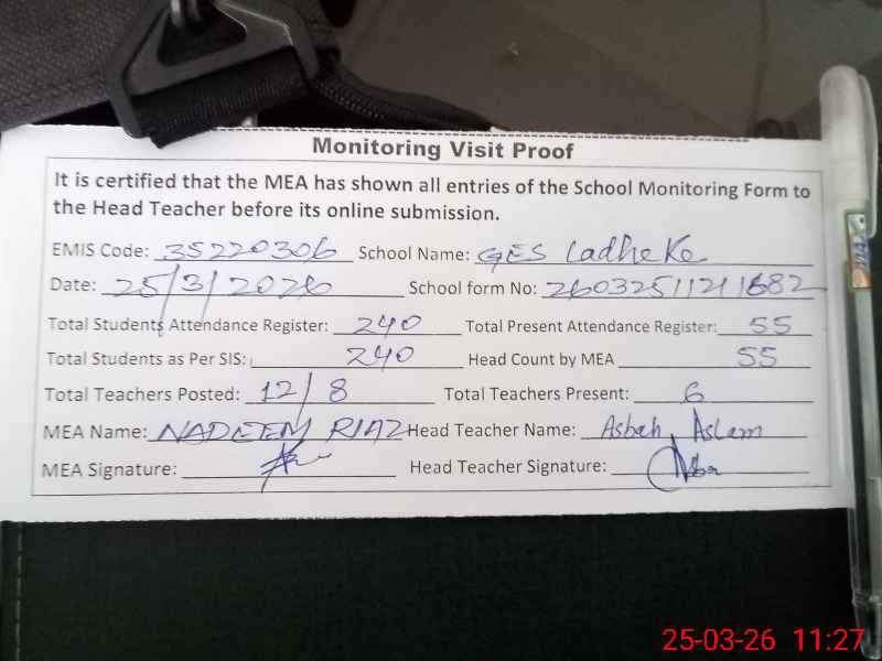 | Attendance Register | Head Teacher | MEA with School | Visit Proof |