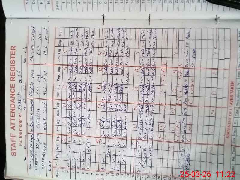 | CNIC | Full Name | Designation | R/C | Absence During Last Calender Month |