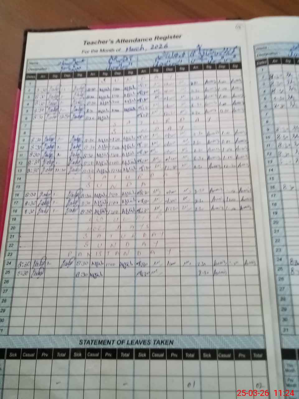 | Leave | Duty | Absent | Maternity | Medical | Ex- Pak |